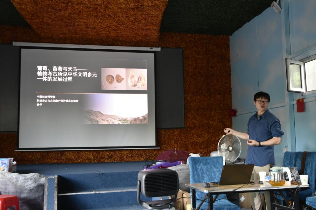 郭美玲博士以“铁质文物的科技分析及保护研究”为主题,系统解析了冶铁技术发展脉络、块炼铁冶炼法与生铁冶炼法的技术内核,以及通过金属学分析铁质文物成分与工艺的原理,并对南城子城址出土的铁器初步保护方法提出了可操作性建议。钟华博士做了题为“葡萄、苜蓿与天马——植物考古所见中华文明多元一体的发展过程”的学术讲座,以新疆吐峪沟高昌回鹘时期佛寺和内蒙古赤峰巴林左旗辽上京城址出土的相关植物遗存为例,从植物资源利用视角解读文明交流,让同学们学会从古代植物遗存中了解到文明的传播与诸种影响因素。此外,钟华博士和王辉博士还分别对工地土样的采集、浮选工作和环境考古工作的开展给予了指导。
